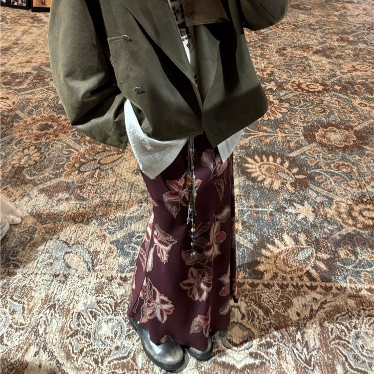 sofia定制25早秋新款复古小众设计感花卉半身裙百搭休闲中长裙子