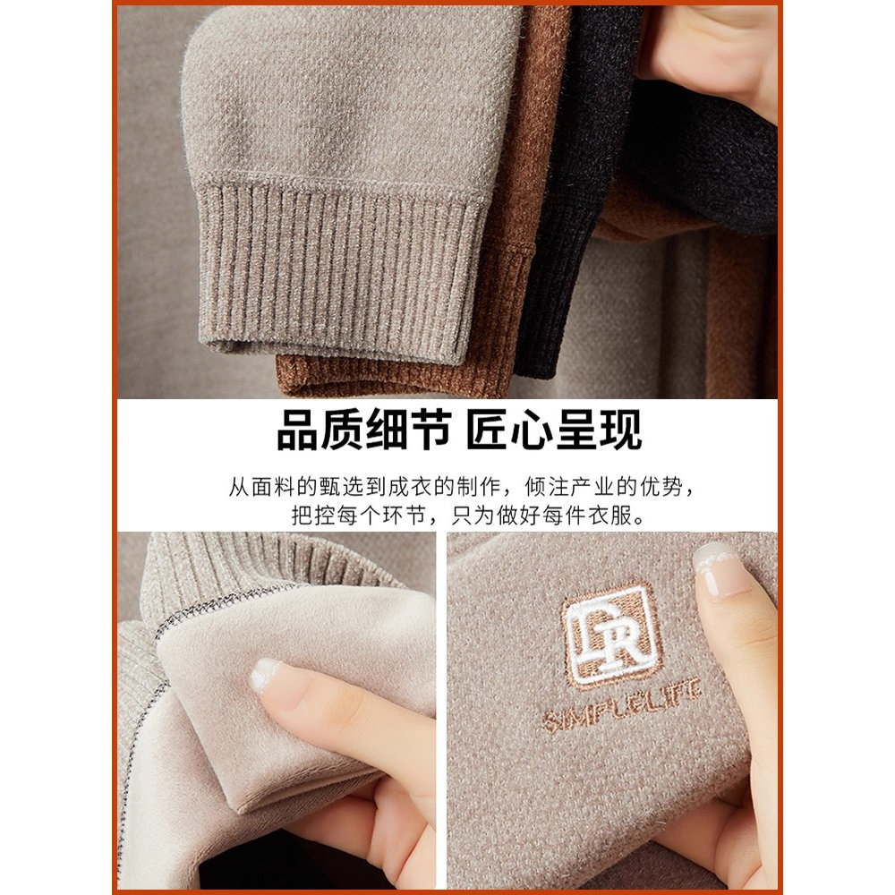 2025年毛衣男冬季新款加绒加厚保暖针织衫一体绒纯色百搭羊毛衫
