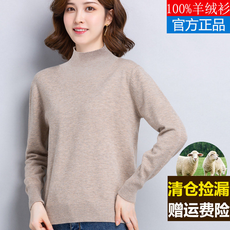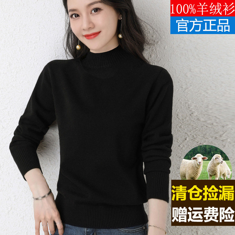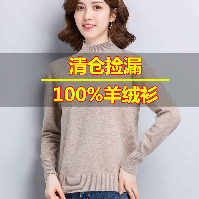 半高领羊绒毛衣女秋冬外穿100纯羊毛加厚宽松针织上衣内搭打底衫