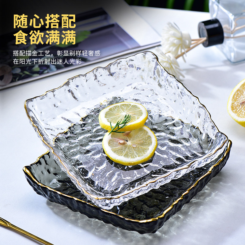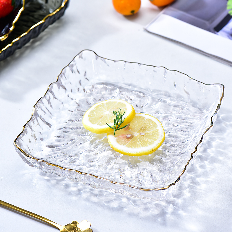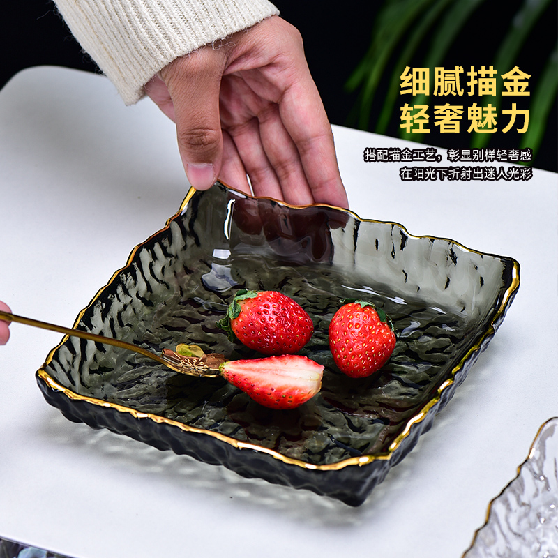 水果盘玻璃甜品盘创意金边沙拉碗家用客厅茶几零食糖果盘轻奢果盘