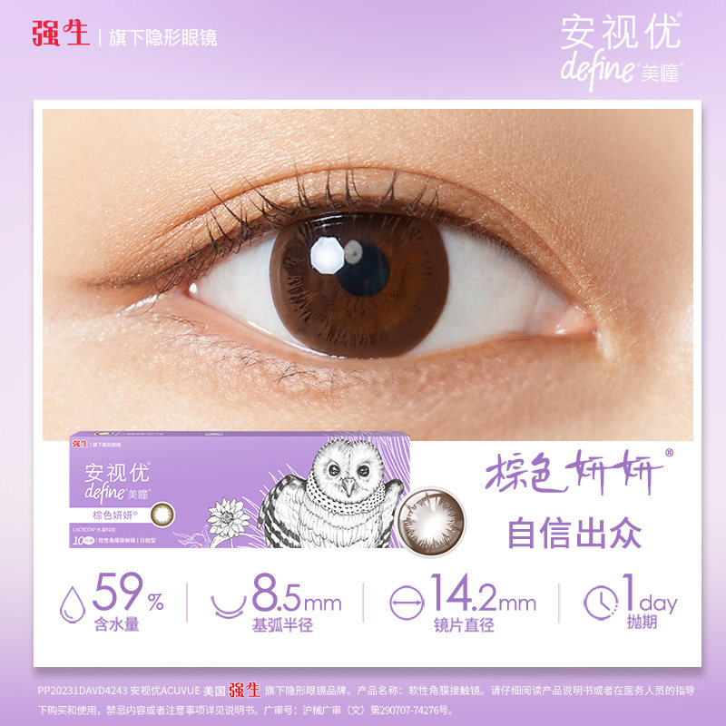 强生美瞳10片日抛安视优define大直径彩色隐形眼镜官授正品新客