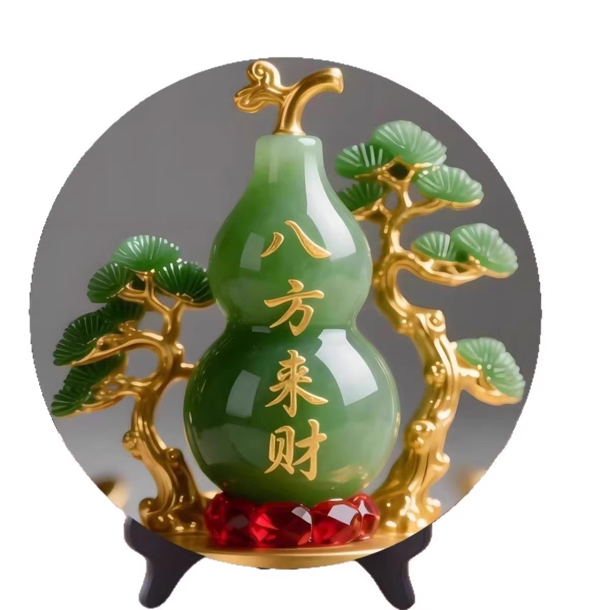八方来财财好客厅摆件家用寓意装饰桌面翠玉葫芦摆台居家玄关摆台