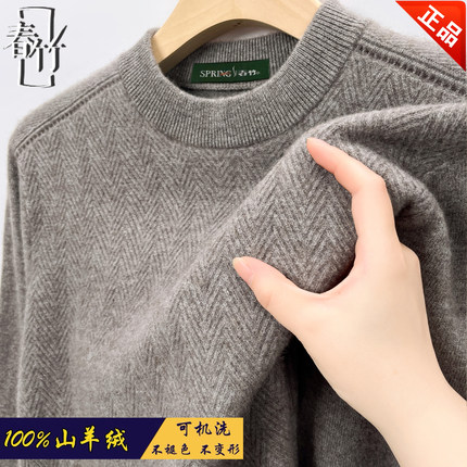 上海春竹100纯羊绒衫2025新款男士保暖高档针织打底衫羊毛衣特价