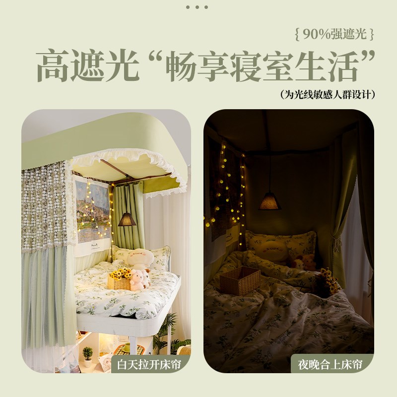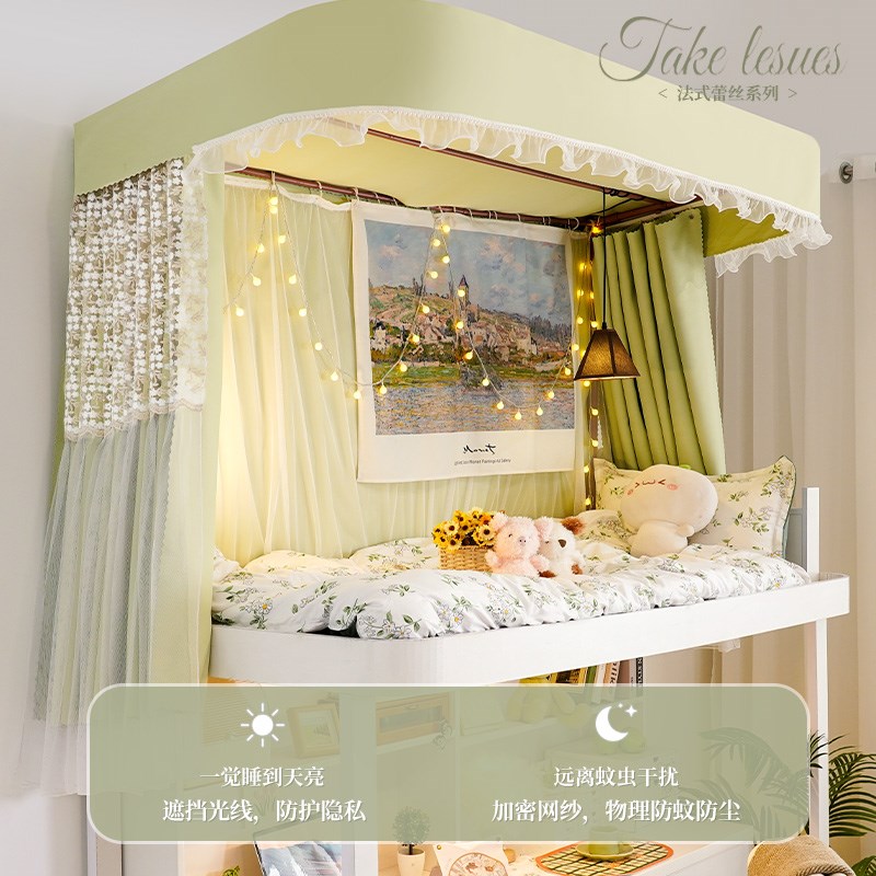 法式强遮光u型轨道床帘 学生宿舍上铺滑轨蚊帐寝室上下铺遮挡窗帘