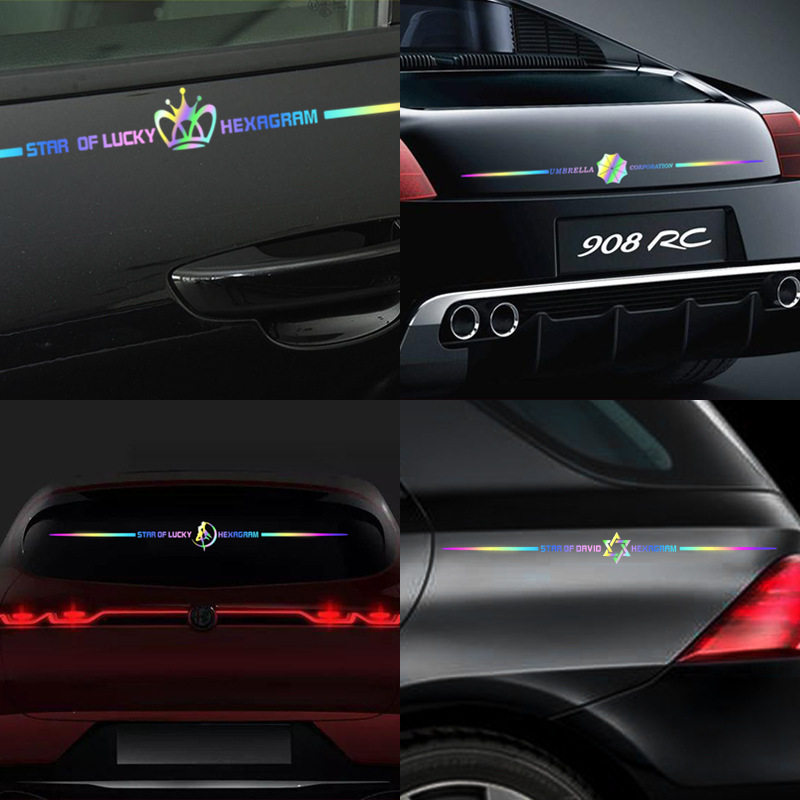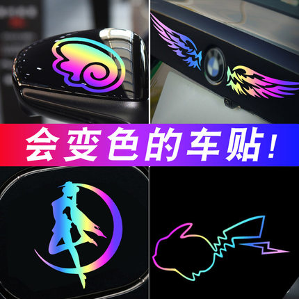 七彩镭射车贴个性电动车尾拉花引擎盖汽车贴纸车身划痕遮挡装饰贴