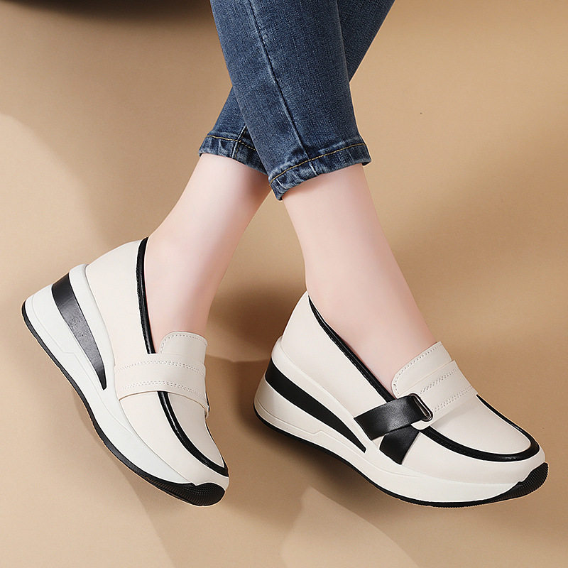 一脚蹬休闲坡跟厚底小个子休闲单鞋2025秋季新款百搭旅游时尚懒人