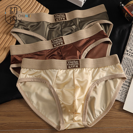 初内冰丝男士内裤男三角裤薄款透气男生缎面青少年发育期男款裤头