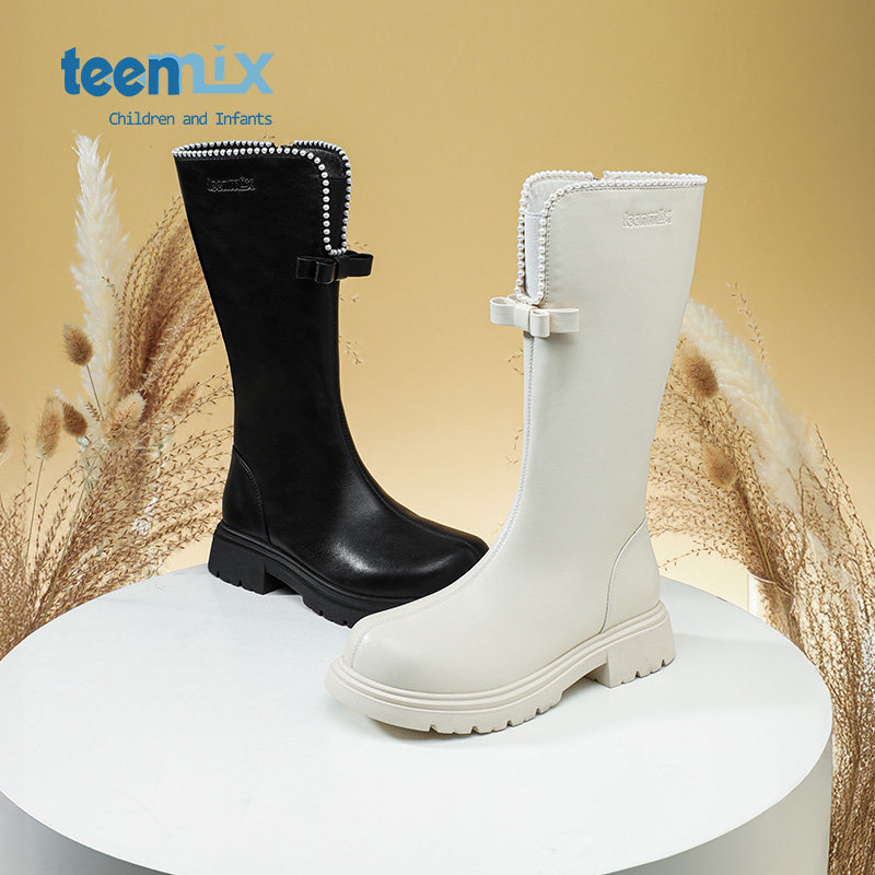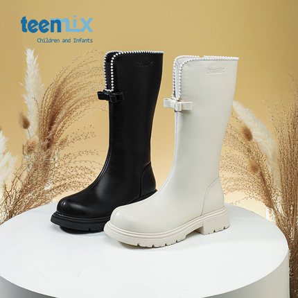 天美意童鞋女童长靴儿童高筒靴2026新款冬季加绒马丁靴子中大童