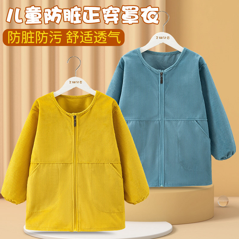 宝宝罩衣秋冬季儿童吃饭围兜中大童棉袄外套加厚外穿画画围裙护衣