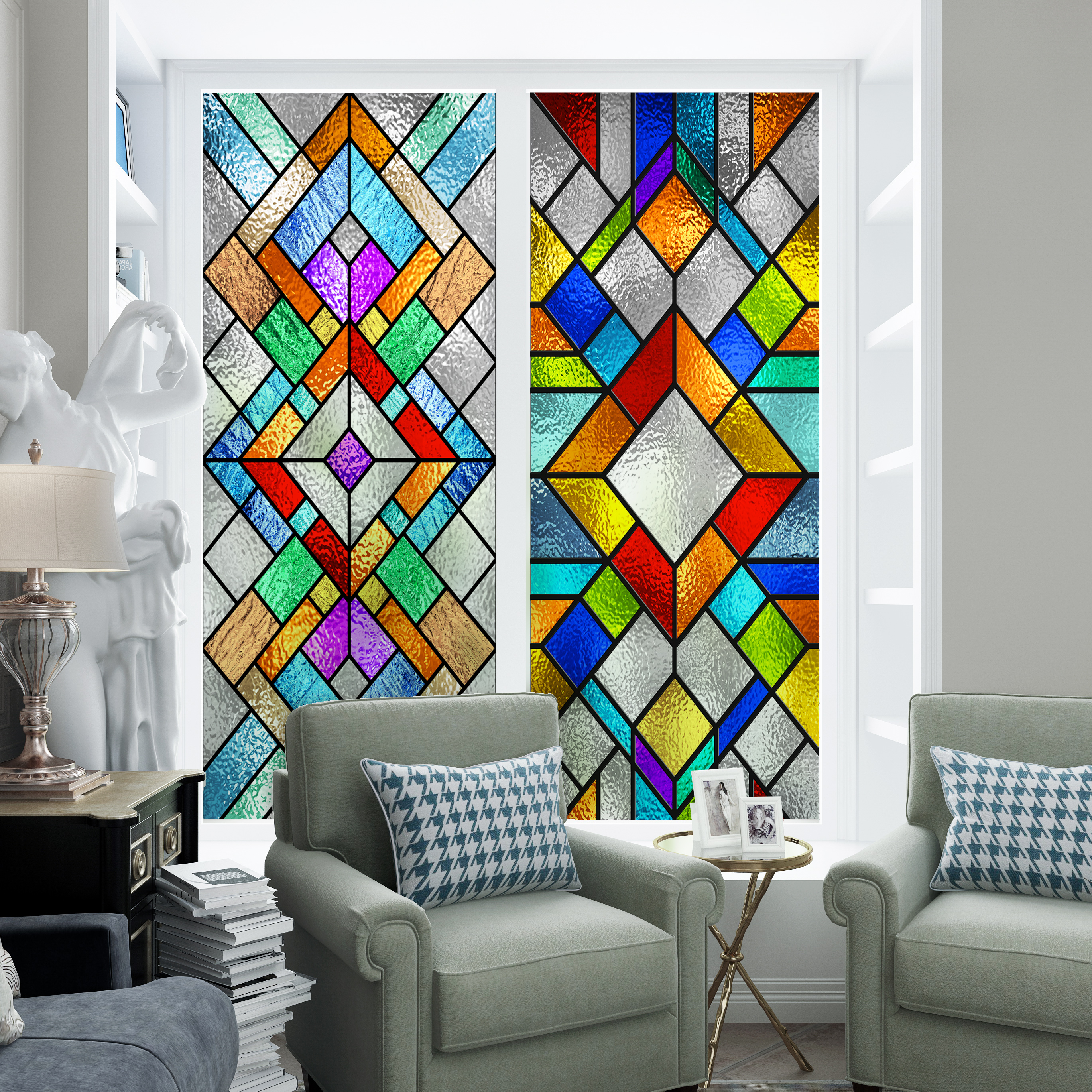 欧式自粘窗花纸复古美式彩色玻璃贴纸浴室贴膜窗户贴纸透光不透明
