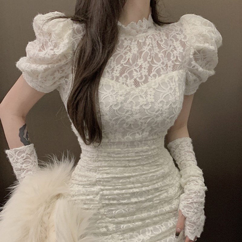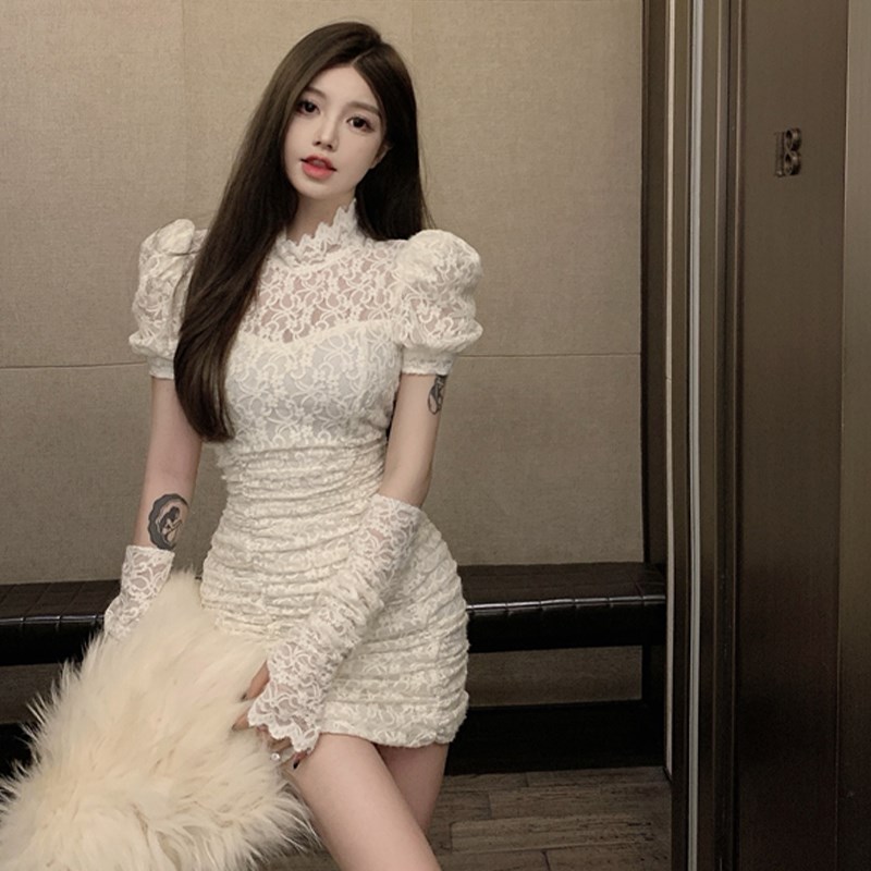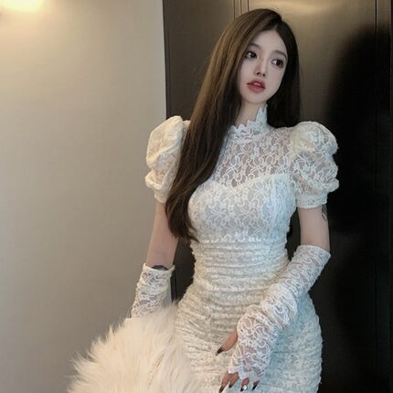 白色性感蕾丝连衣裙女秋季高级感裙子法式气质高端名媛修身包臀裙