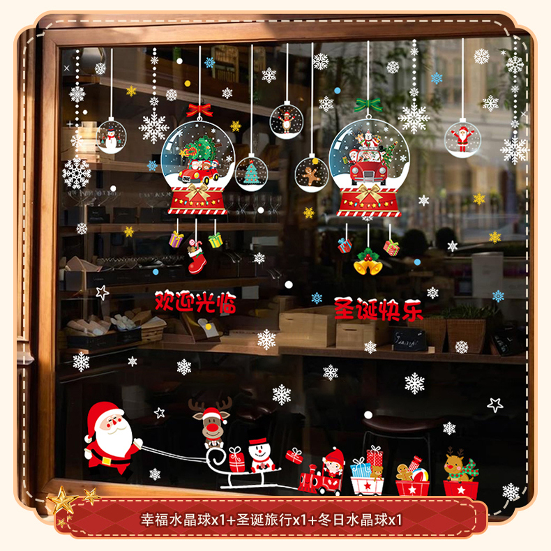 2025圣诞节装饰墙贴玻璃静电贴纸店铺商场新年装饰品场景布置拍照