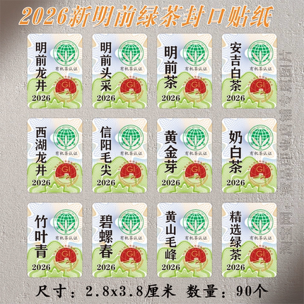2026新茶明前茶西湖龙井安吉白茶黄金芽不干胶奶白茶贴纸封口标签