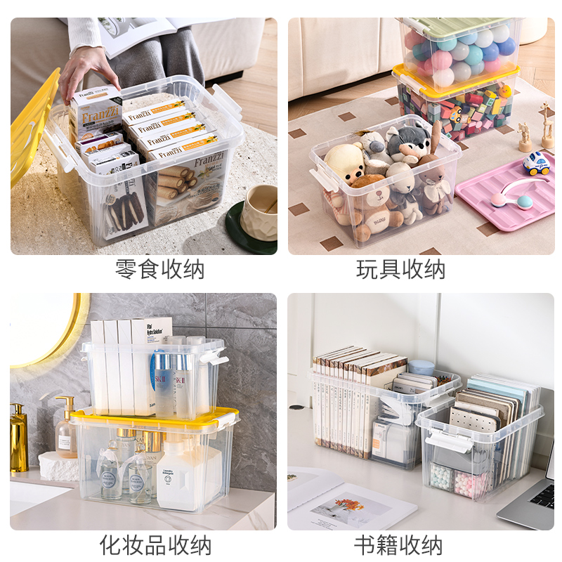 透明零食收纳盒家用桌面玩具乐高整理箱化妆品书本杂物塑料储物筐