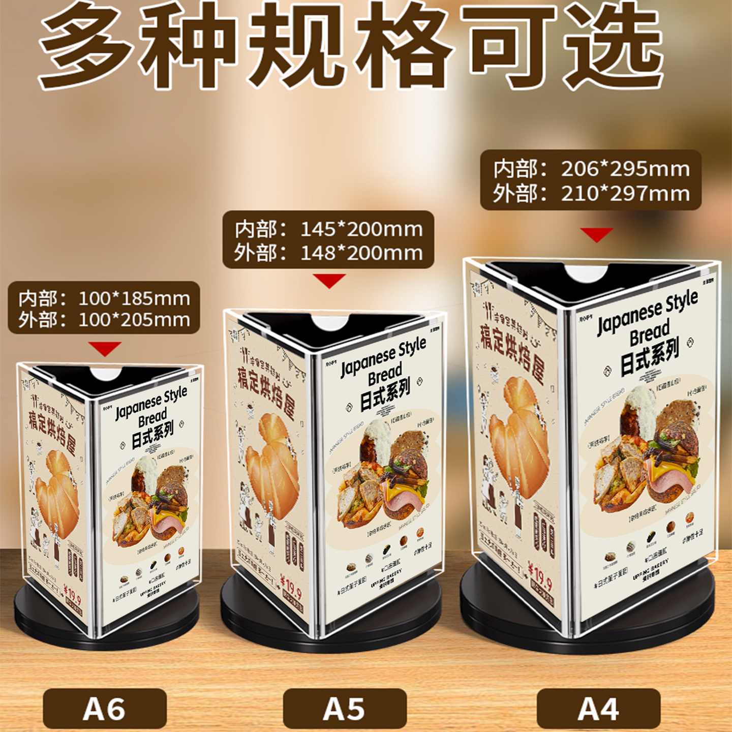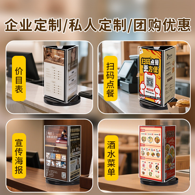 菜单展示牌三面旋转餐牌台卡亚克力立牌高品质三角桌面桌牌会议a4a5餐厅吧台酒水牌高清加厚价格价目表展示架