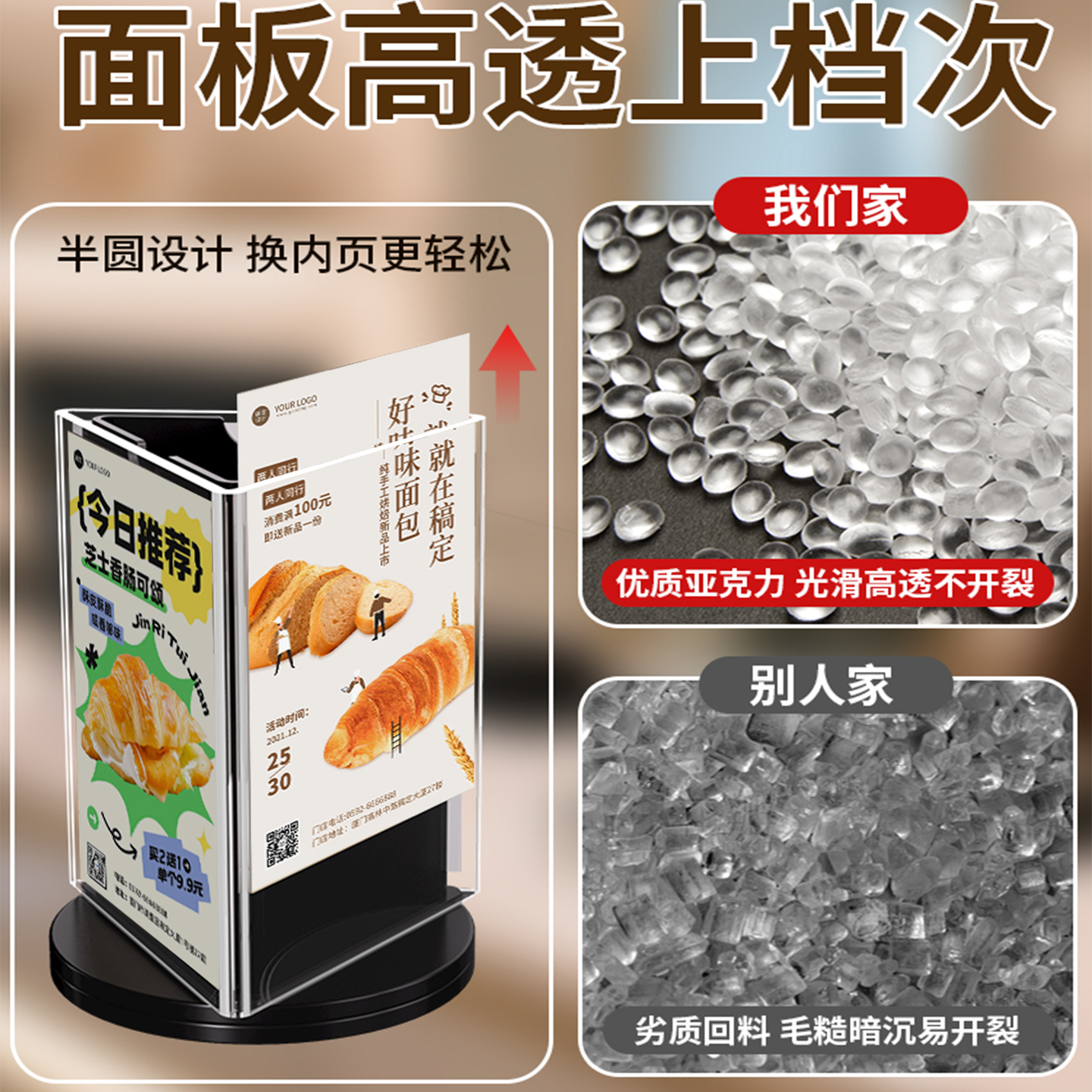 菜单展示牌三面旋转亚克力立牌