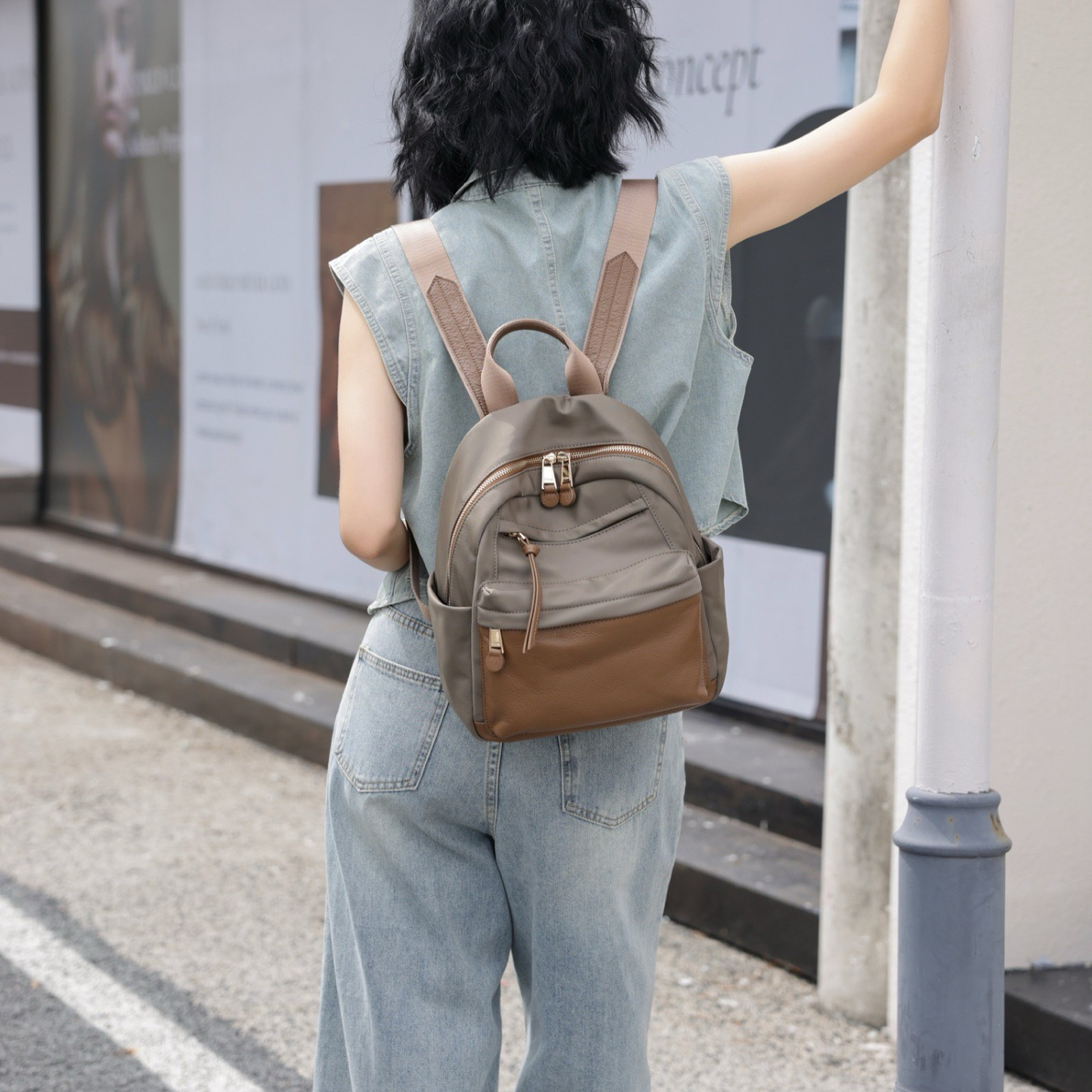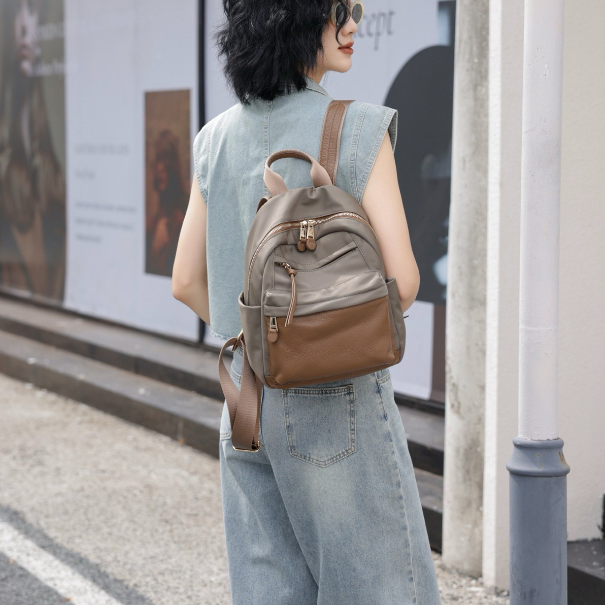 欧货女包牛津布双肩包配头层牛皮背包2025新款高级感休闲百搭潮牌