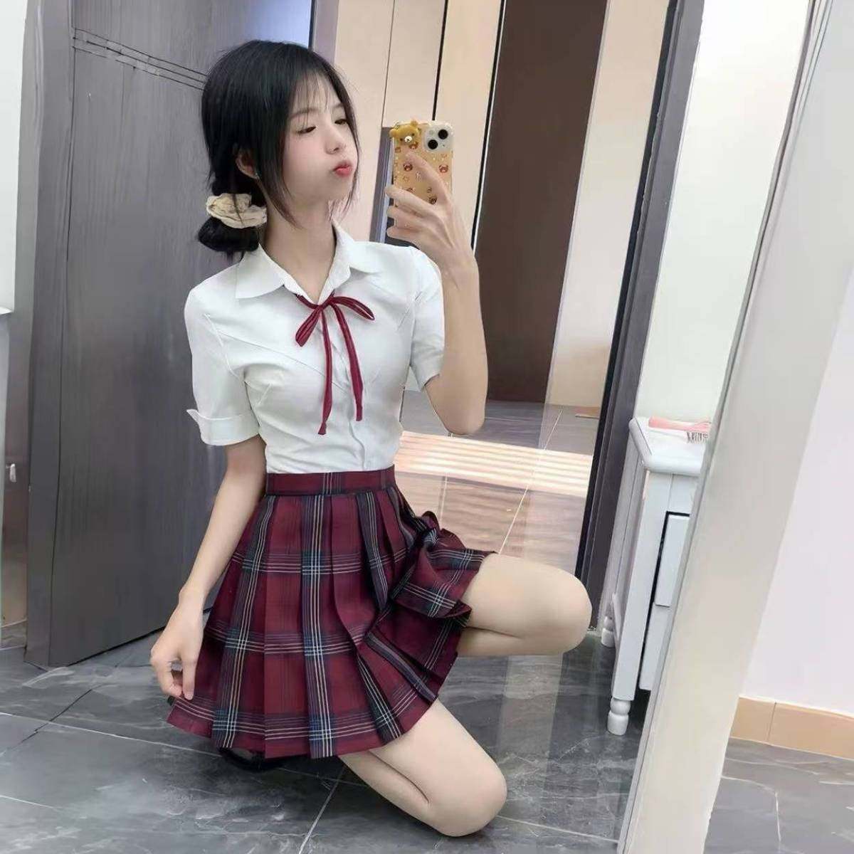 原创JK制服jk夏季收腰短袖白色学院衬衫百褶裙套装短裙学生