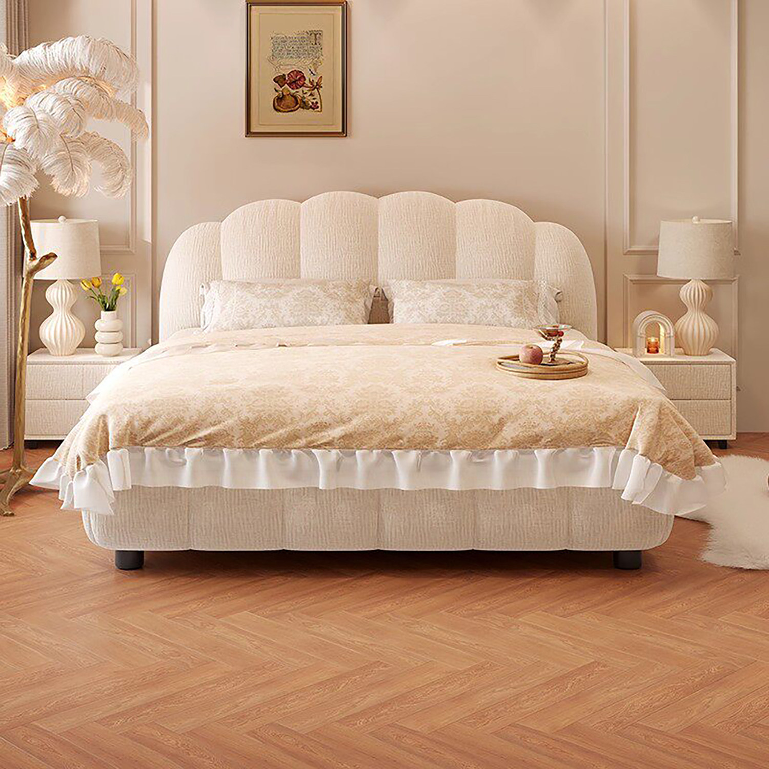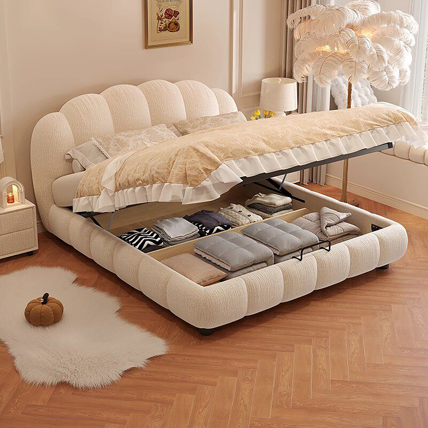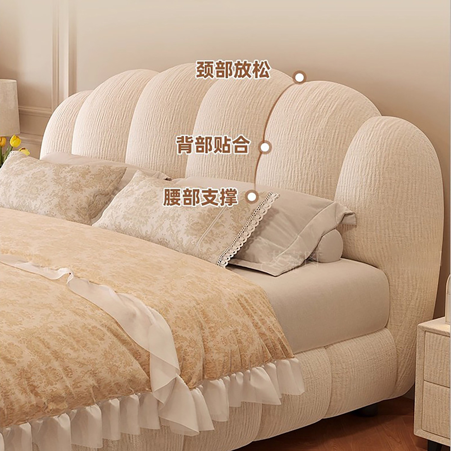 奶油风简约拇指泡芙床牛奶绒布公寓主卧室齐边可储物双人大床婚床