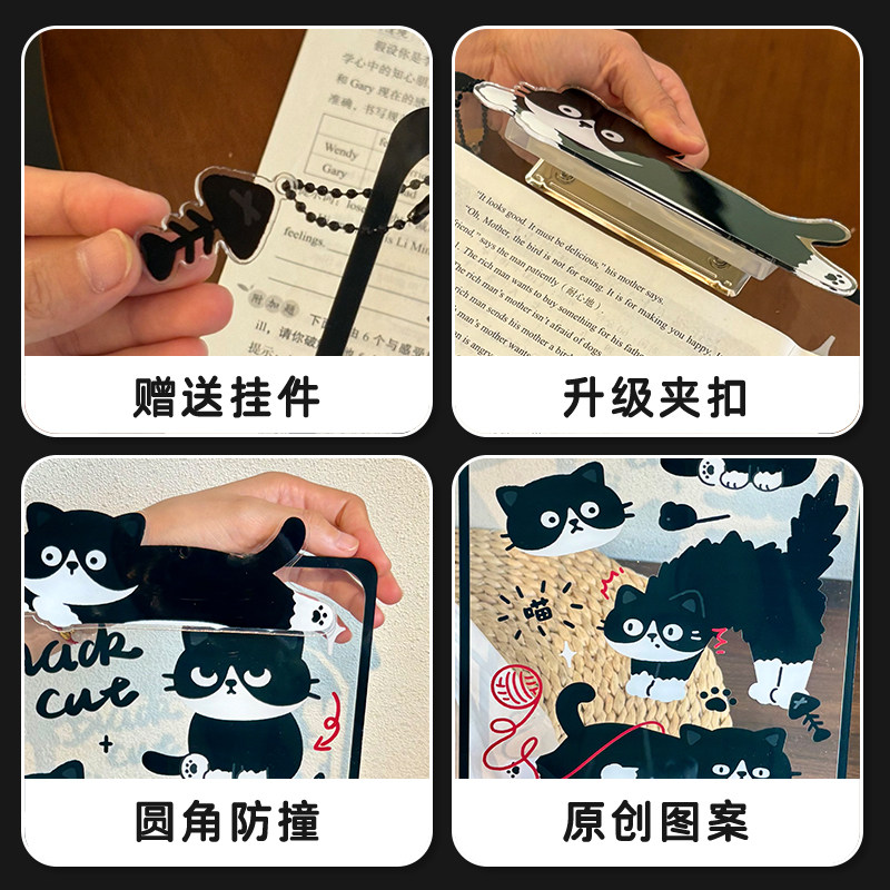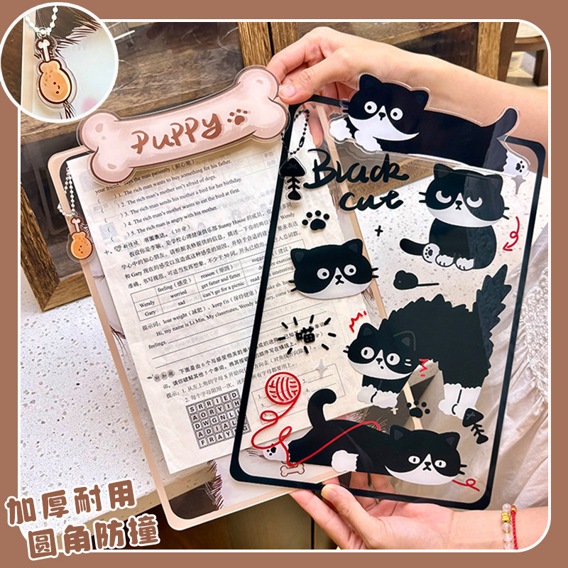 原创小黑猫夹板写字板垫板学生a4板夹亚克力文件试卷夹新款ins风