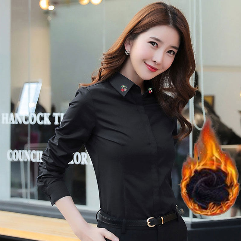 2025秋季镶钻领子宽松黑色衬衫女长袖修身职业装大码学生白衬衣女