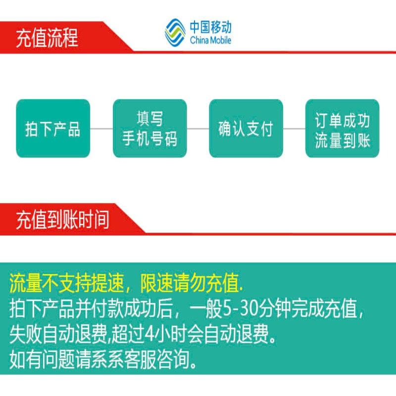全国通用流量 黑龙江移动7天5G流量包 及时生效 不可提速ZC