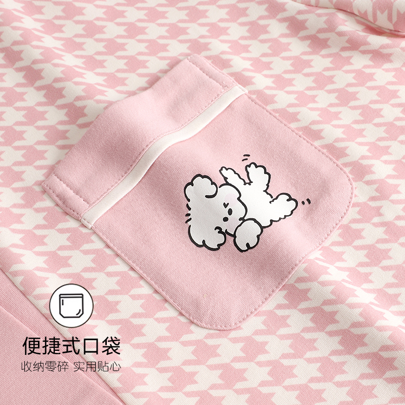 芬腾可安睡衣女纯棉夏季短袖长裤2025新款甜美开衫薄款家居服套装