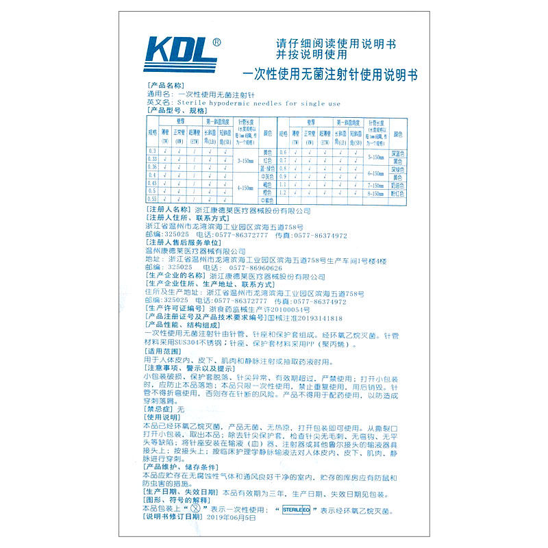 医用康德莱一次性使用注射针