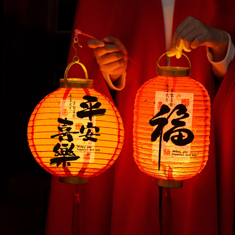 2026新款儿童手提发光灯笼彩灯马年元宵节春节装饰挂件古风花灯