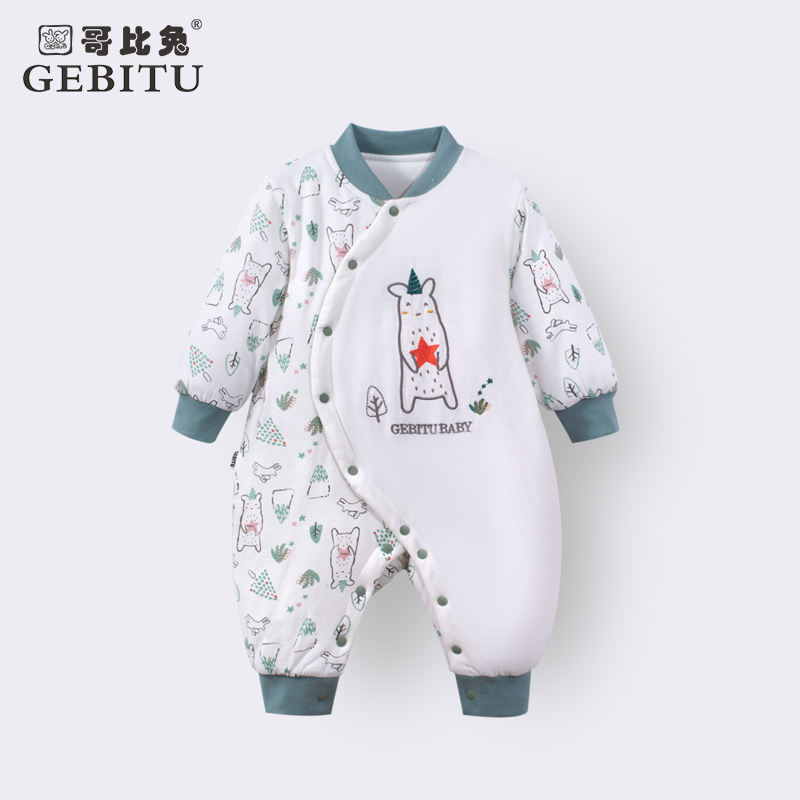 哥比兔连体衣秋冬新生儿衣服冬季婴儿秋装纯棉宝宝夹棉哈衣家居服