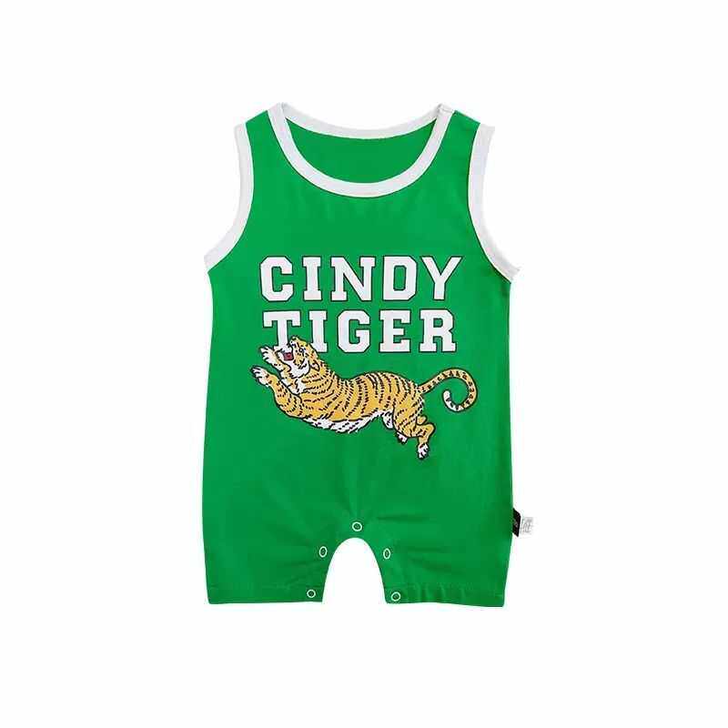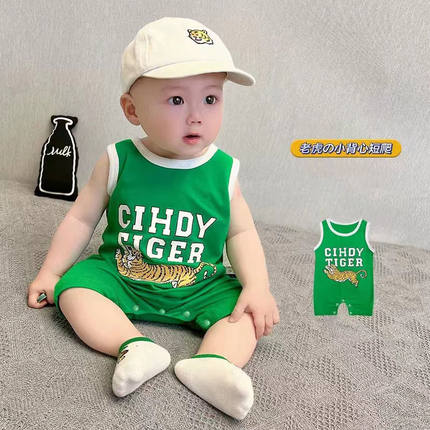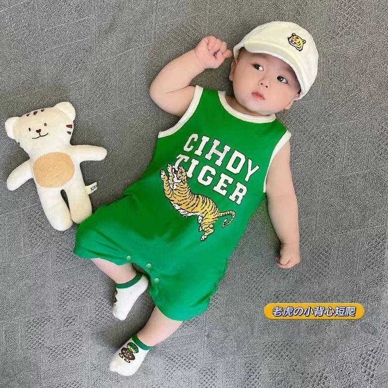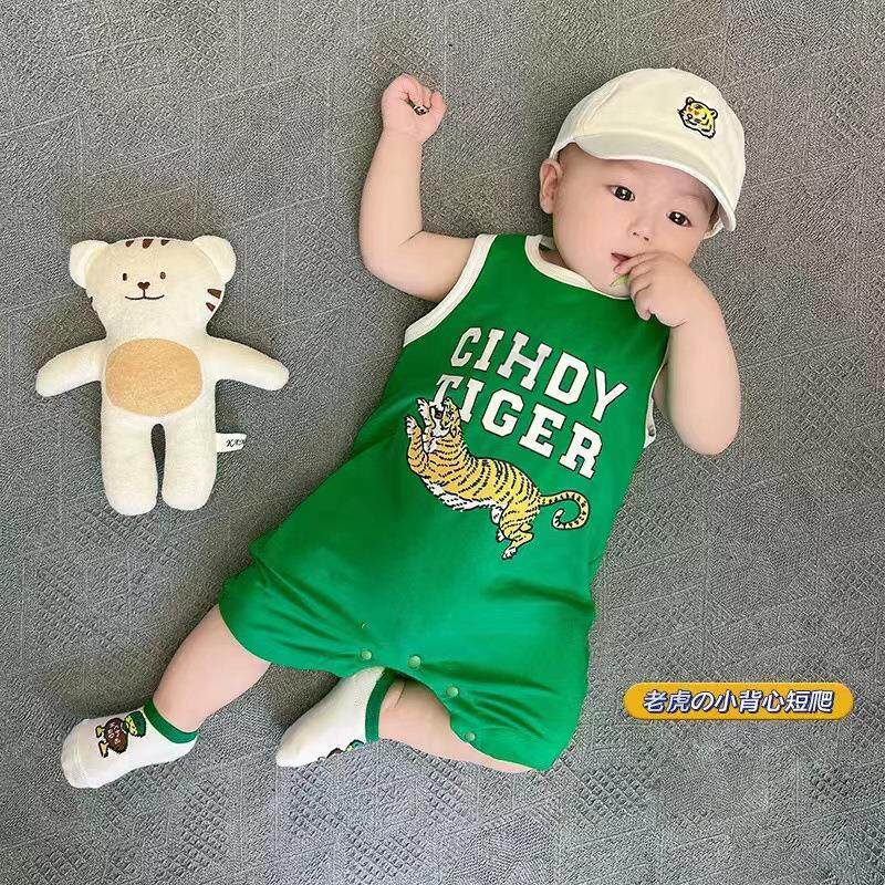 婴儿吊带连体衣夏季宝宝卡通虎造型衣服纯棉哈衣网红新生儿爬服夏