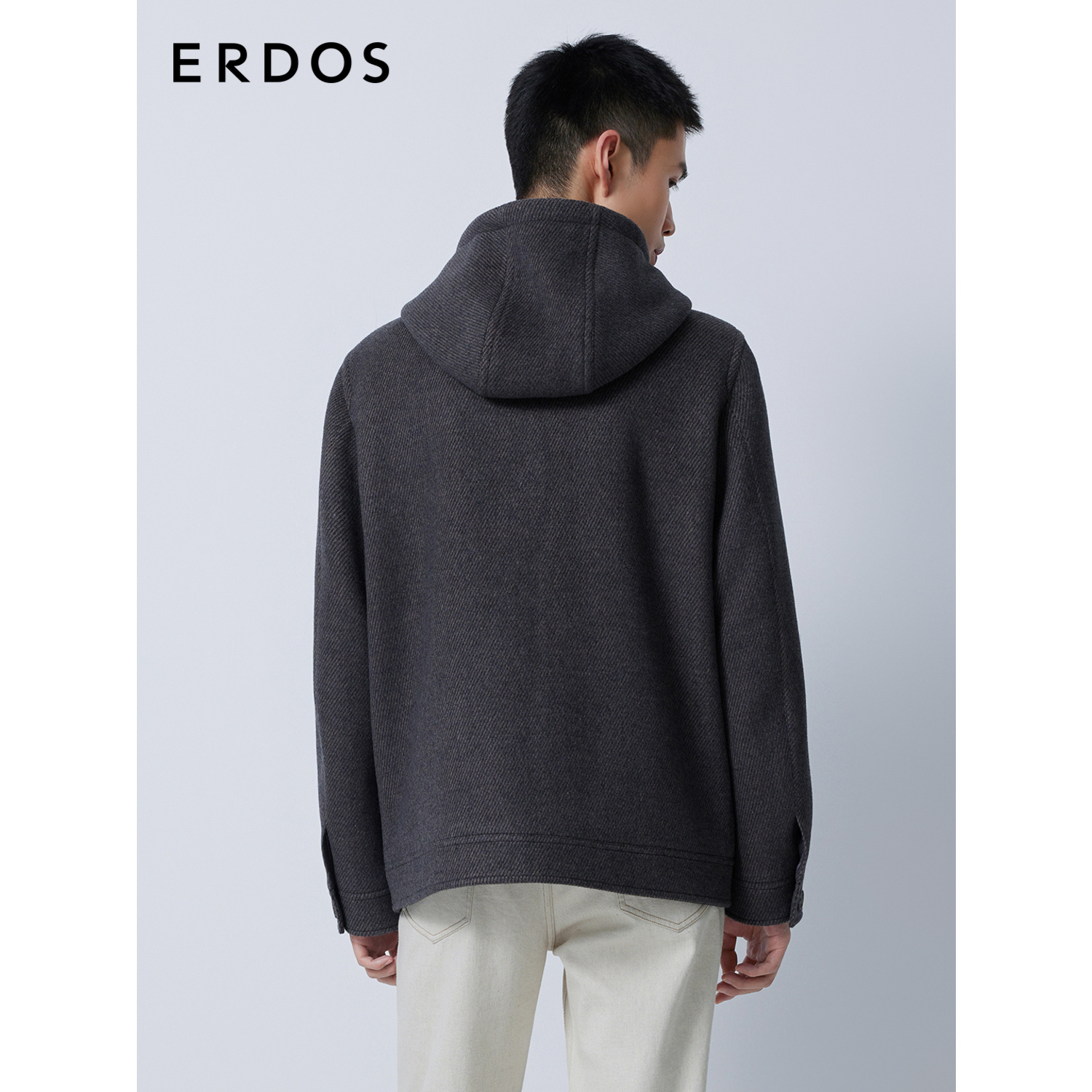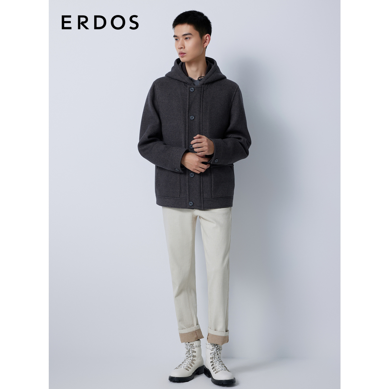 ERDOS 男装丝毛绒混纺夹克秋冬中长款加厚外套连帽格纹大衣
