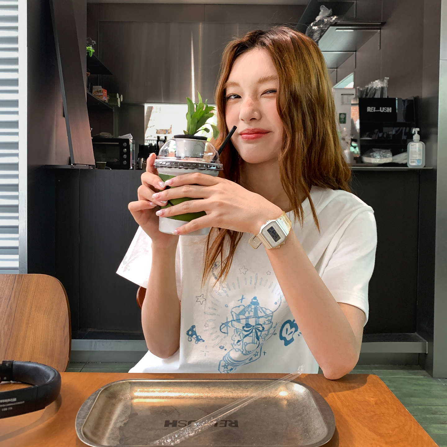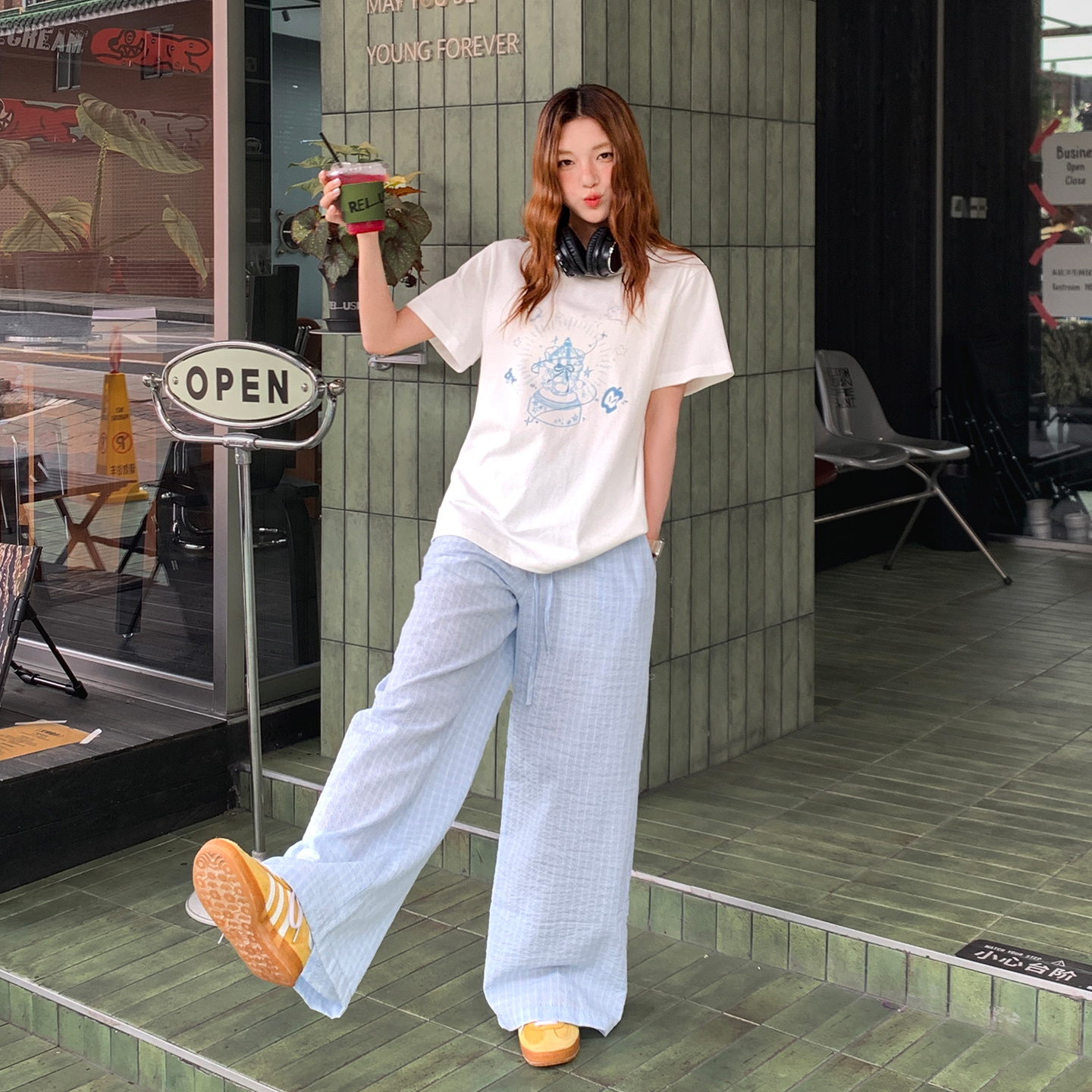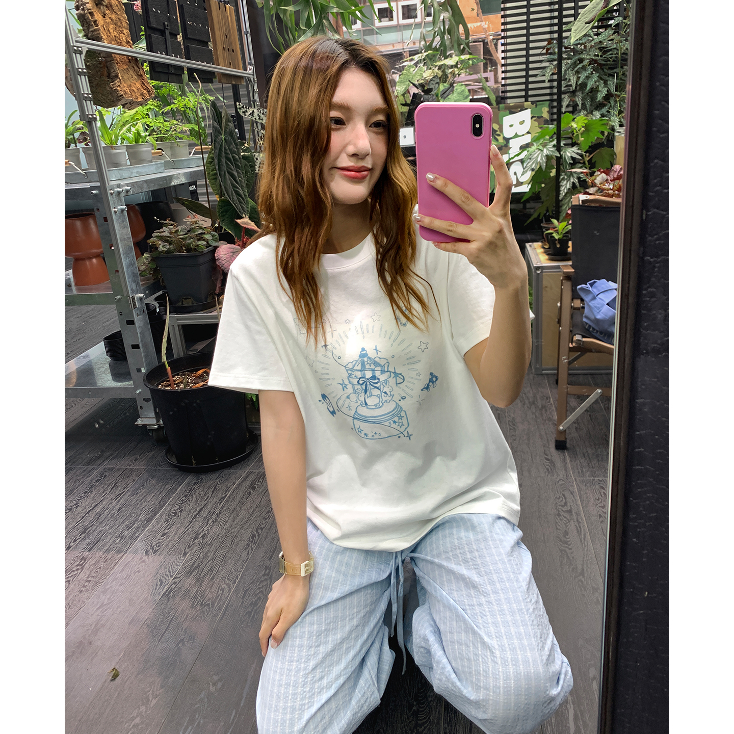 珍妮宇航局 原创印花短袖t恤女夏新款简约显瘦正肩小个子宽松上衣