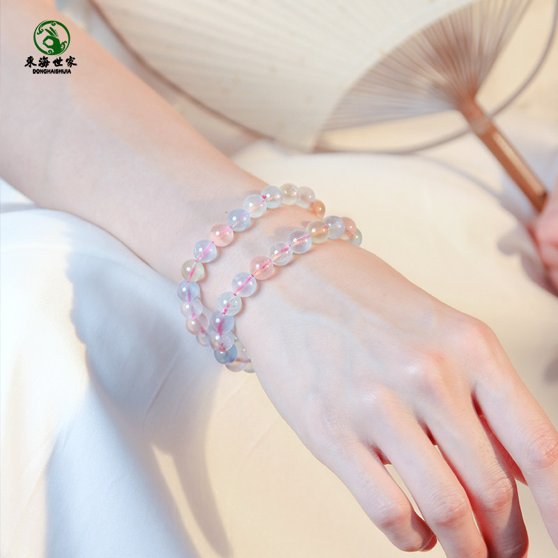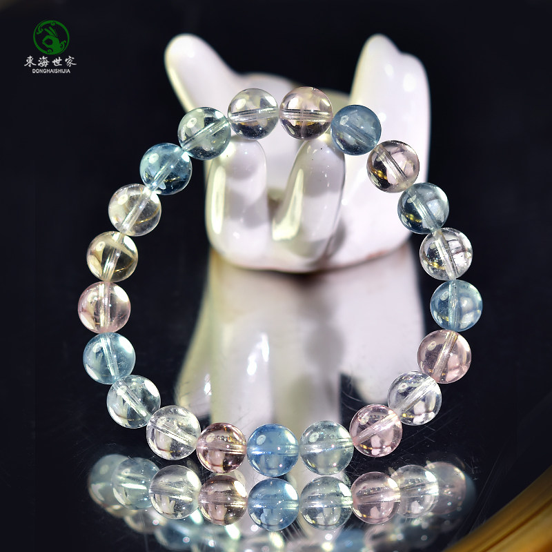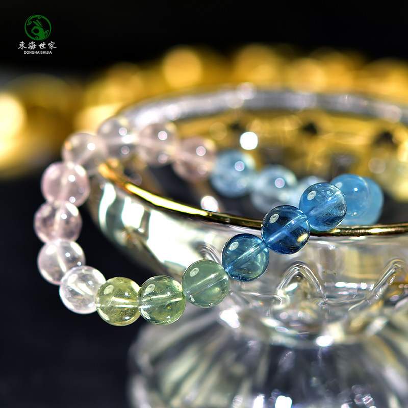 摩根石手串女东海水晶玛瑙翡翠玉石散珠子冰种渐变绿柱石多宝手链