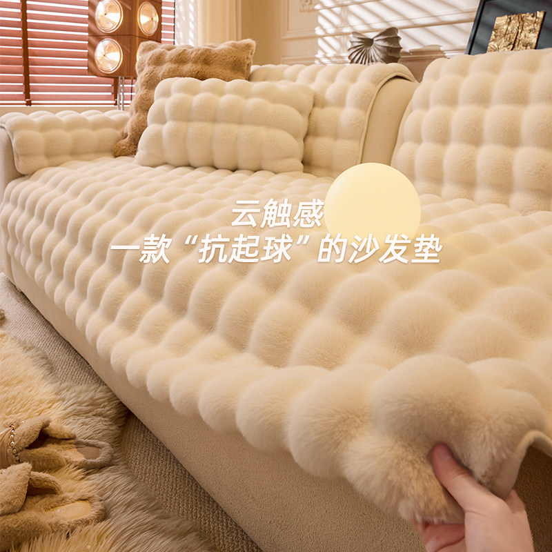 兔兔绒沙发垫冬季天毛绒坐垫防滑2025新款盖布巾高级感固定直排垫
