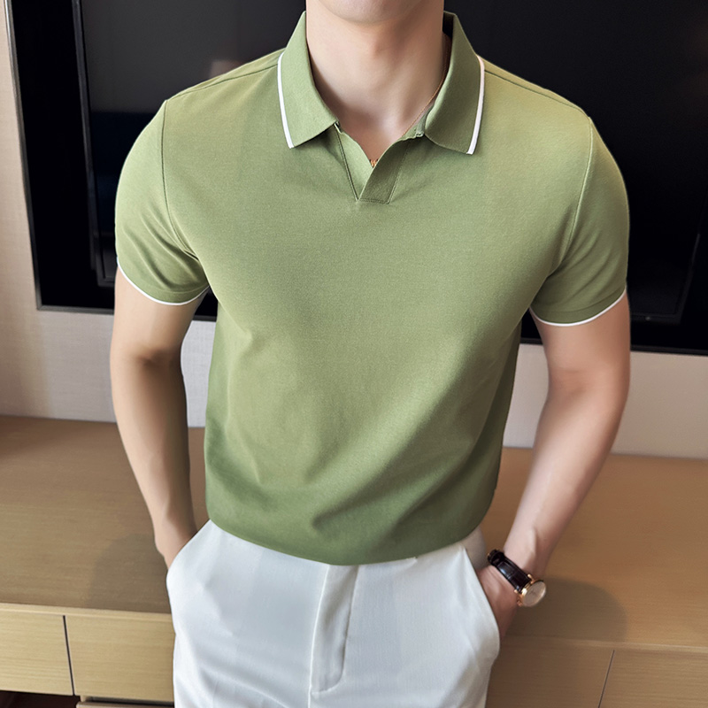 领子条纹短袖POLO衫男翻领夏季韩版青年修身半袖体恤潮流商务上衣