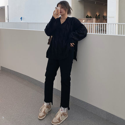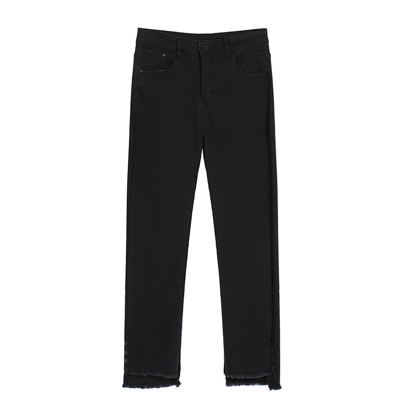 LTGIRL破边直筒弹力牛仔裤黑色显瘦显腿长百搭高腰大码九分烟管裤