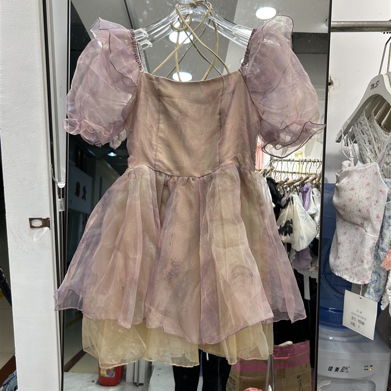 法式紫色连衣裙女夏季高级感气质仙女蓬蓬纱裙收腰显瘦小个子短裙