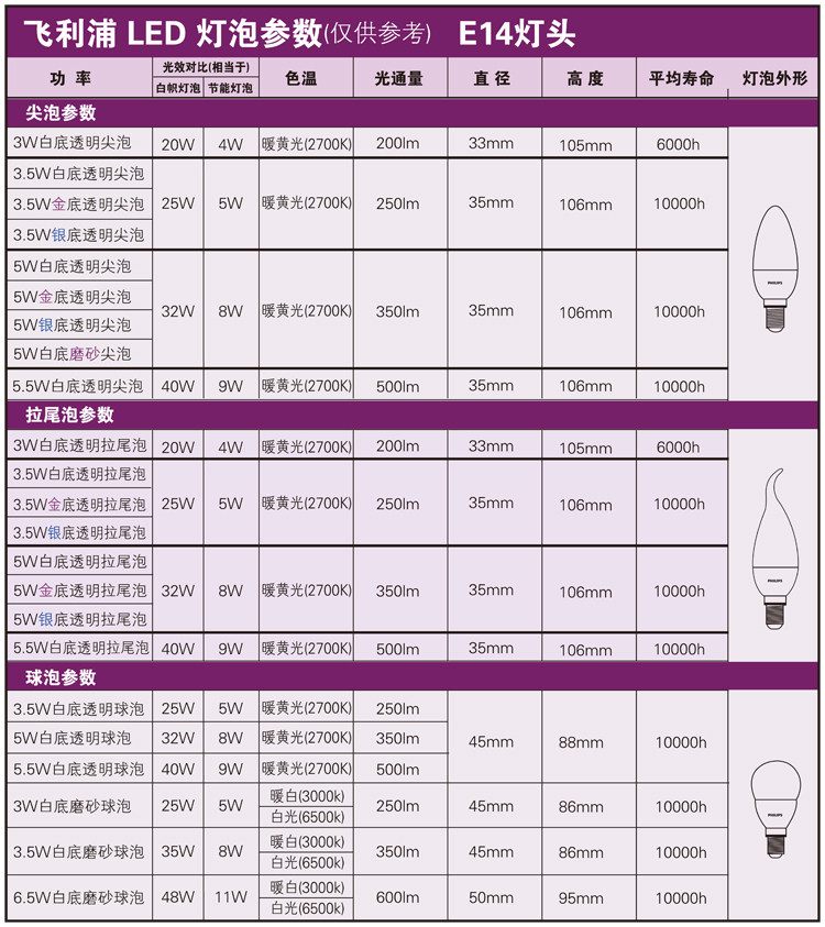 飞利浦led灯泡E14小螺口尖泡3.5W4W4.5W5W 节能透明4只装正品