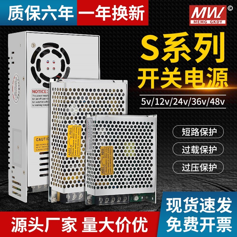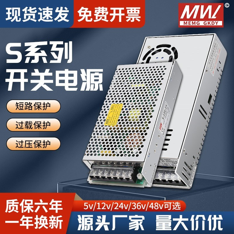 明纬S-350W220v转5V12V24V48V直流开关电源可调变压器1A5A10A20A