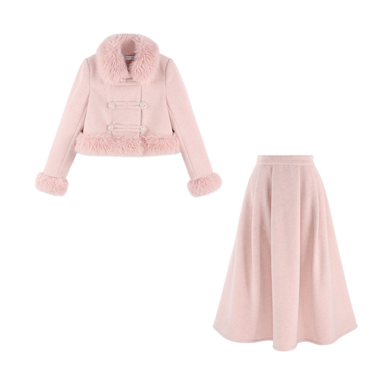 法式毛领短外套半身裙两件套女秋冬季高级感气质名媛裙装时尚套装
