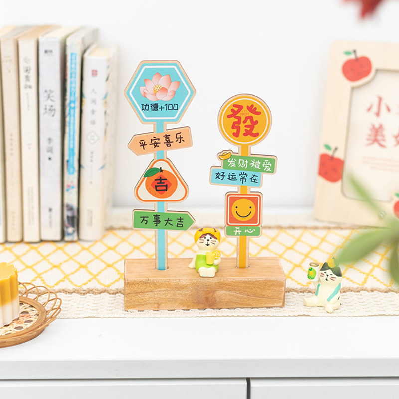 阿楹 路牌治愈情绪小摆件工位洞洞板电脑桌高级过年运气提升装饰