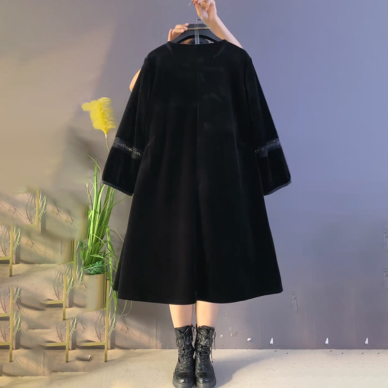 胖妹妹加大码冬季新款古风显瘦刺绣丝绒连衣裙优雅气质九分袖裙子