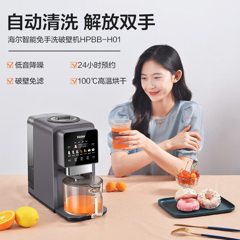 海尔破壁机家用免手洗多功能料理机全自动清洗加热榨汁豆浆机H01