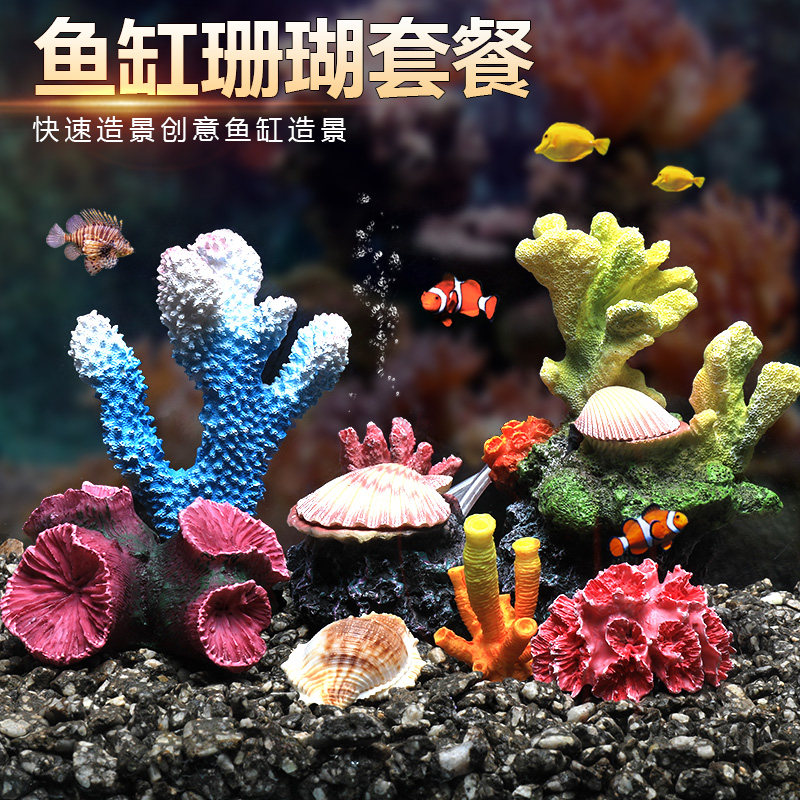 鱼缸仿真珊瑚造景水族箱海水装饰贝壳懒人水草珊瑚礁水景套餐组合