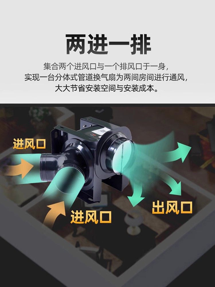 绿岛风排气扇家用轻音分体管道风机酒店一拖二换气扇卫生间送风机