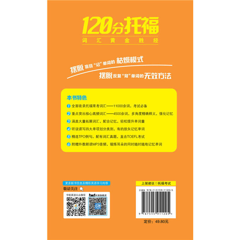 120分托福词汇黄金胜经 一线讲师教学结晶 TPO真题词汇 赠mp3光盘