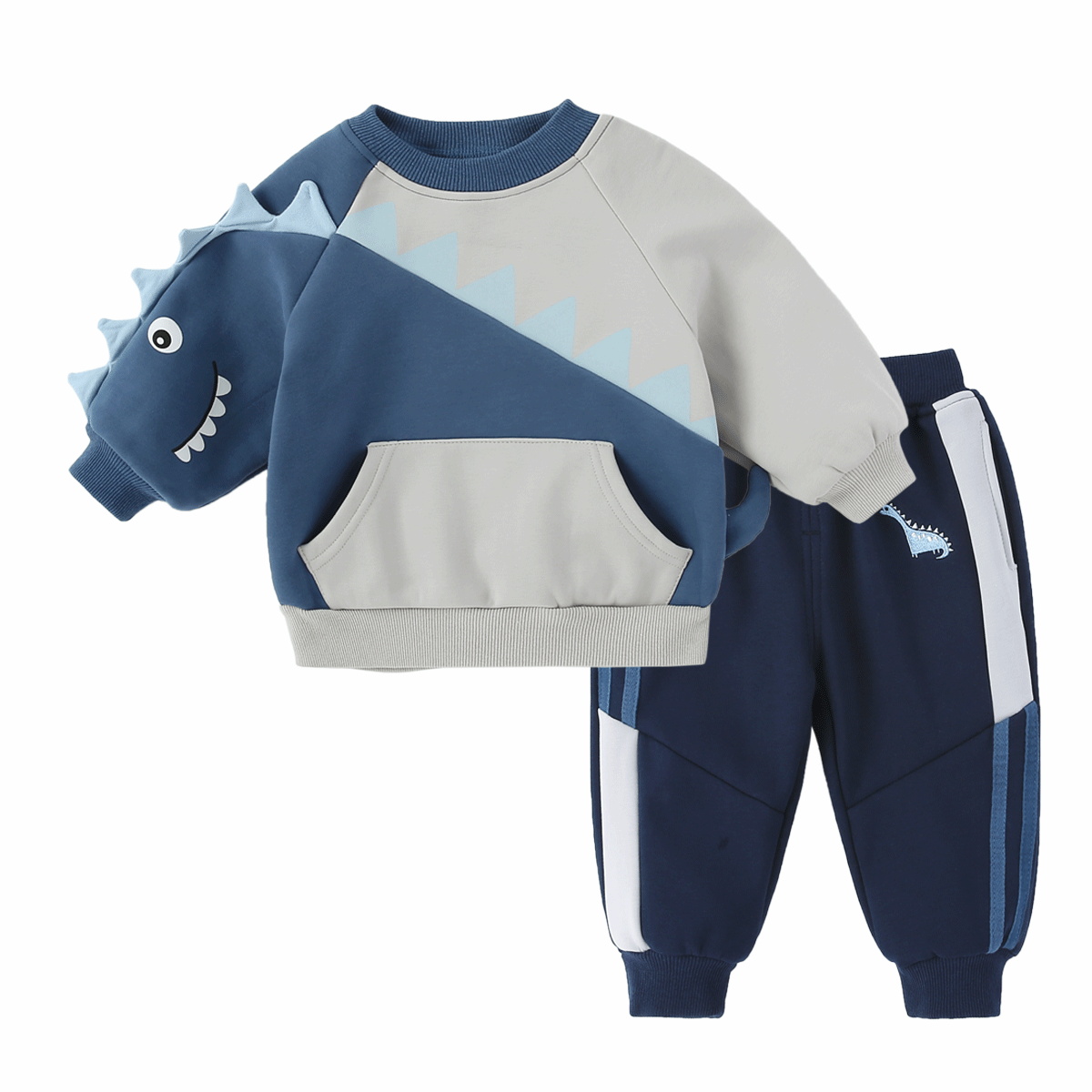 男童秋套装春秋新款小男孩拼色加绒运动上衣裤子两件套儿童衣服