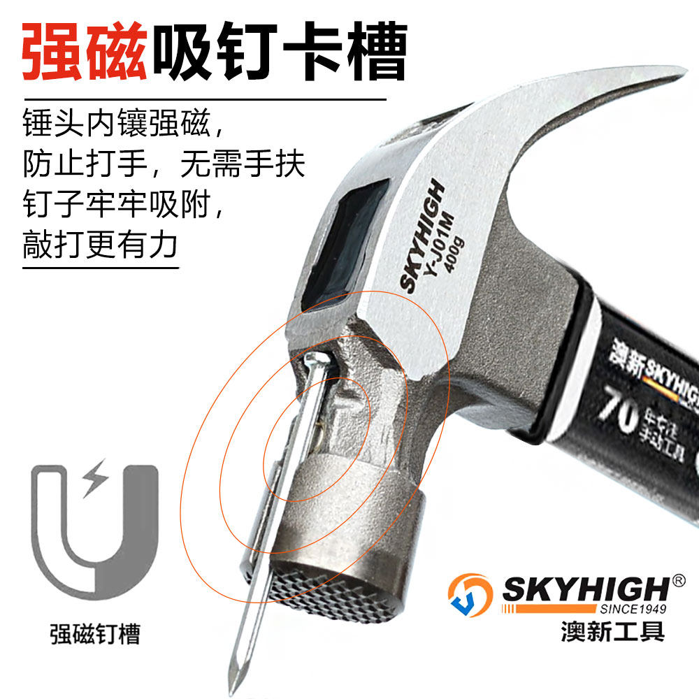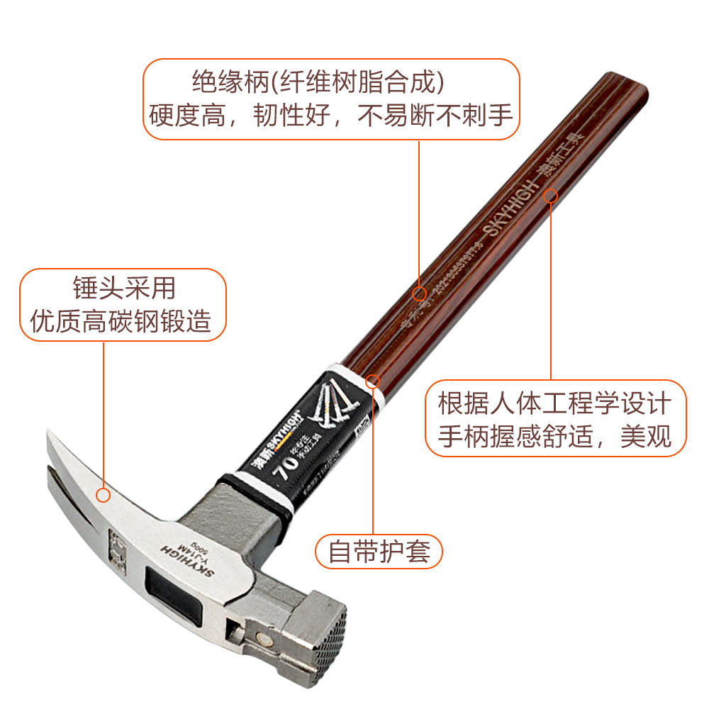 澳新羊角锤带磁钉锤榔头一体高碳钢绝缘柄羊角锤工地木工专用奥新
