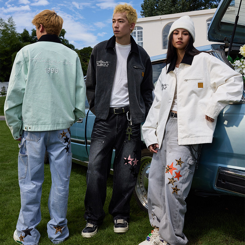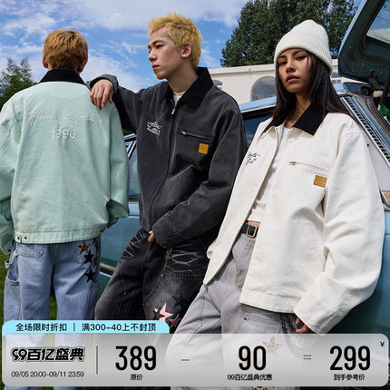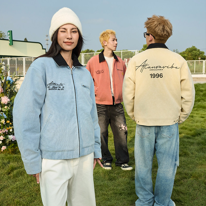 HACR美式复古洗水做旧底特律夹克